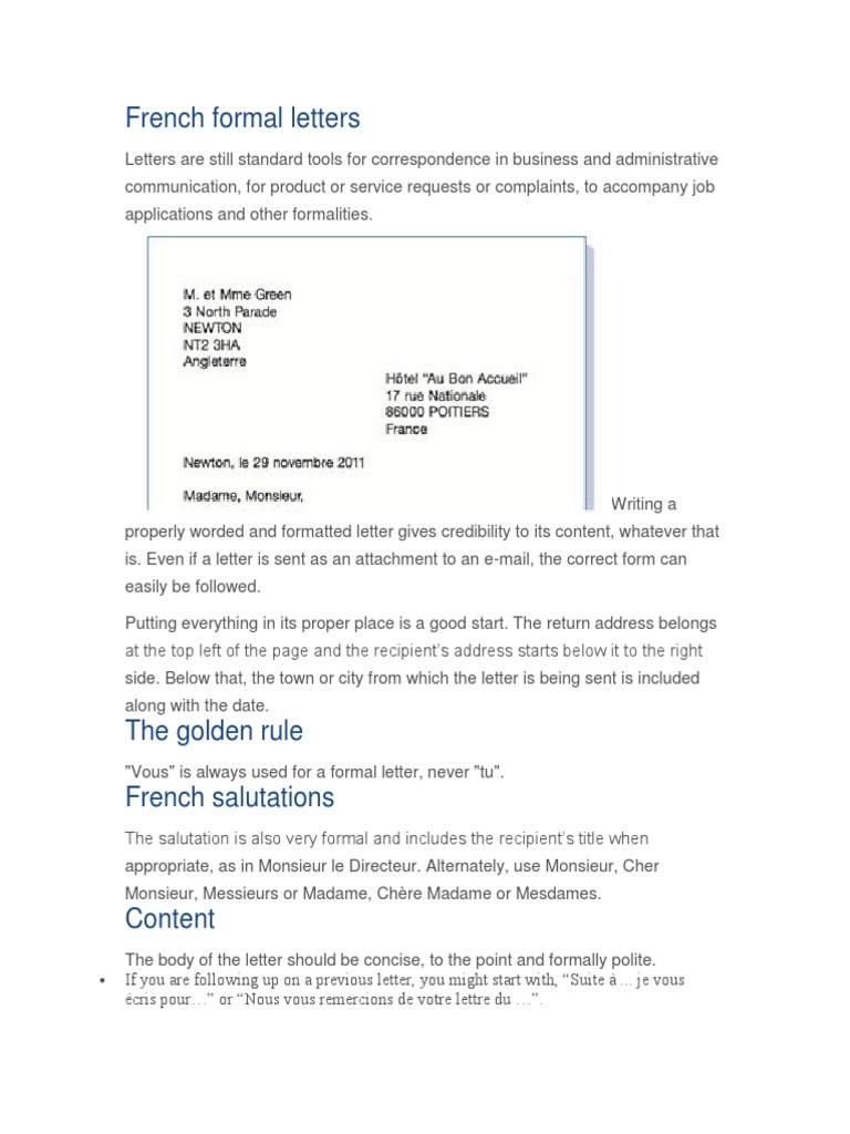 for "Structure Of A Formal Letter In French / French Cv Example - Collection - Letter Templates"